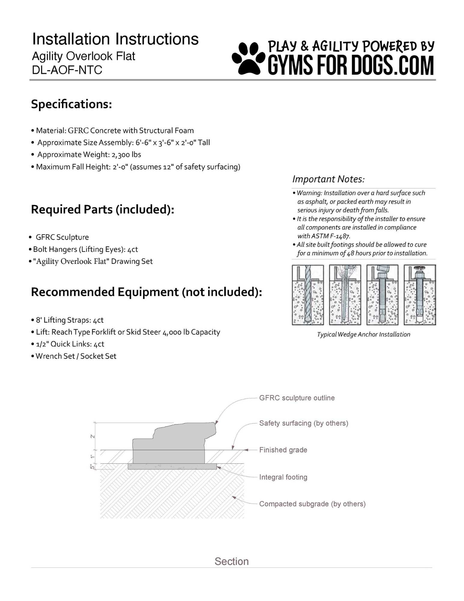 Thoughtfully designed, the Agility Overlook Flat offers a welcoming, elevated surface for exploration, training, and rest. Crafted from GFRC concrete with structural foam, this low-profile feature brings together safety, strength, and natural styling, making it an essential addition to any well-designed dog park.