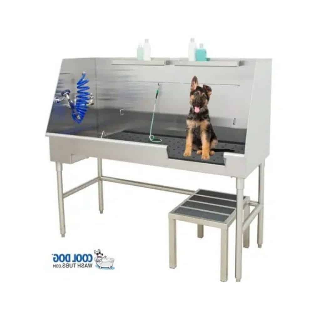 The Cool Dog Pro Series Perpendicular Access Dog Wash Tub brings innovation to animal bathing with a number of features to reduce water/shampoo use, keep hair out of drains and increase safety and ergonomics for both bathers and pets. The Stainless-Steel Doggie Wash Tub is ADA friendly and features perpendicular as well as parallel access. Practical, dependable, and absolutely beautiful, our Cool Dog Wash Tubs are the perfect addition to your dog washing area.