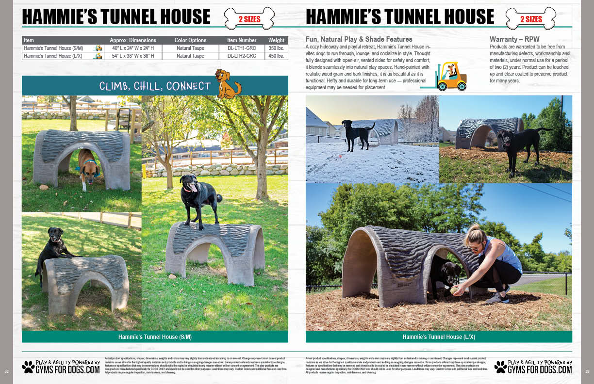 Gyms For Dogs – Natural Wood Like – Exclusive Signature Hammie’s Tunnel House Lumber Like- Constructed from Fiber Reinforced Concrete