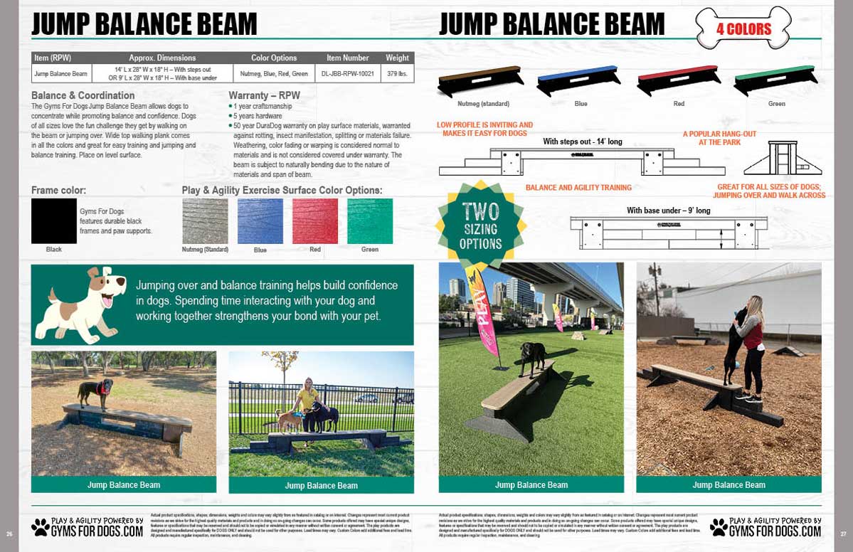 The Jump Balance Beam allows dogs to concentrate while promoting balance and confidence. Dogs of all sizes love the fun challenge they get by walking on the beam or jumping over.