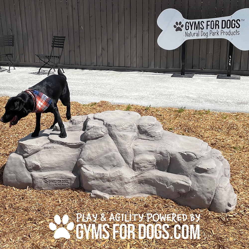 Climbing Boulders are perfect for dog parks. The boulders provide numerous natural climbing features for people and dogs of all ages. They are molded from real rock, hand-carved to simulate a real boulder, made of UV-resistant fiberglass, and come with a special anti-graffiti coating. Installation is as simple as placement on an existing slab or footing and bolting down.