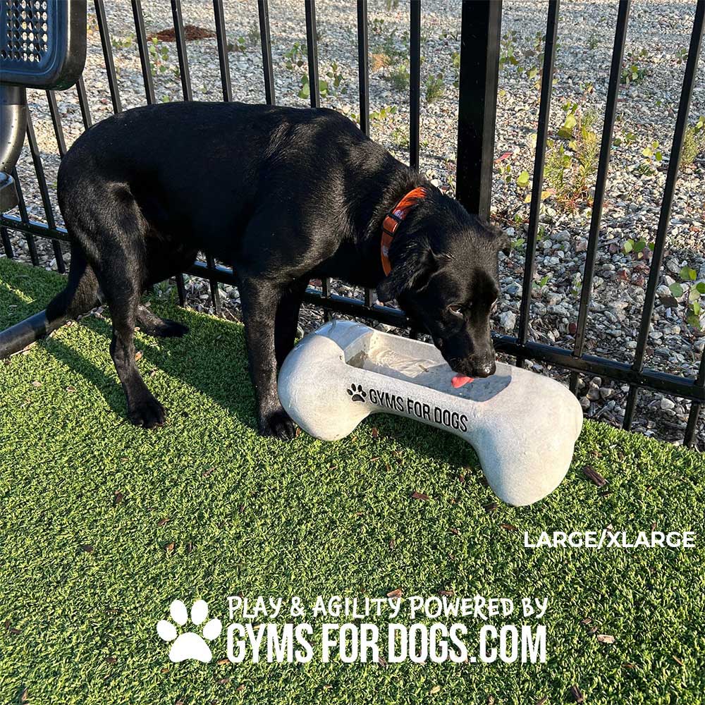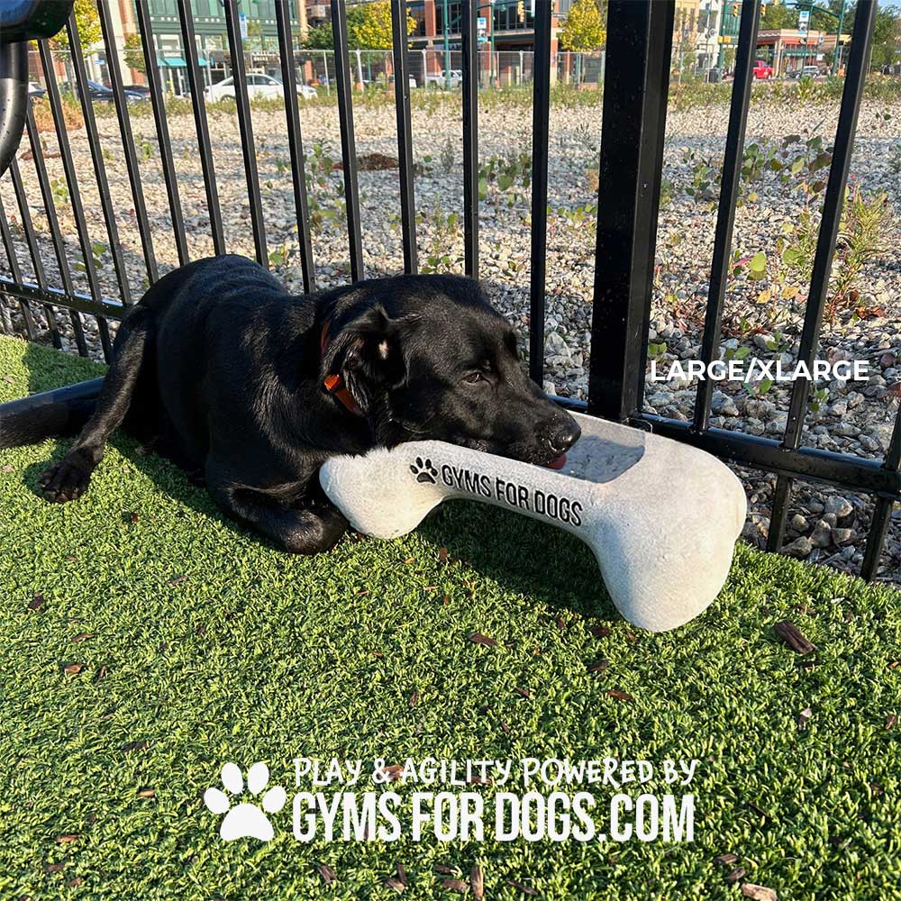 The Dog Bone Bowl (L/X) is 25” L x 9” H x 10” W and 75 lbs.