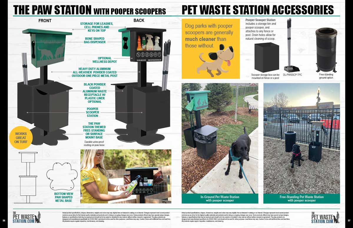 - Can be mounted to fence post or free-standing paw station base that can be bolted down to concrete or free standing portable