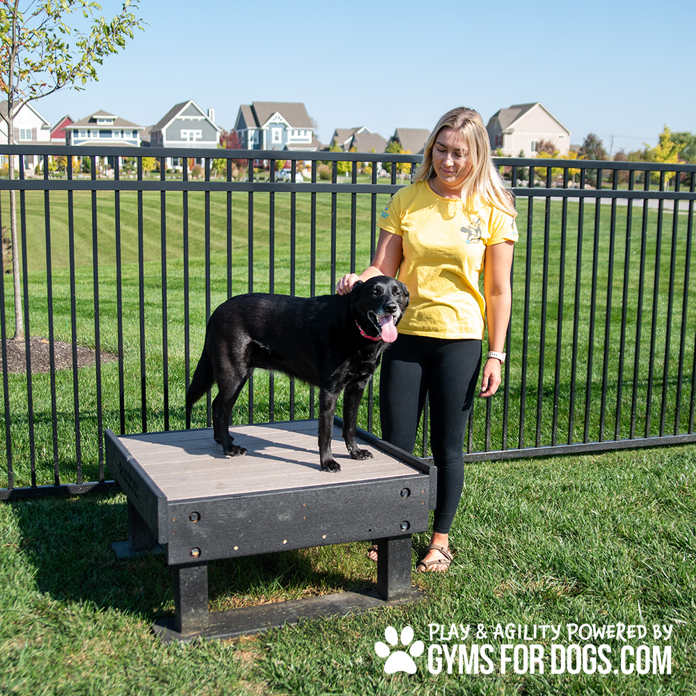 The Training Platform (S/M) provides a place for dogs to take a rest break while running the dog park course. Use this piece to practice commands and new training or groom your pooch while he takes a pause. This platform is designed for comfortable ADA use and features air vents for dogs to sit in comfort. Keeps dogs away from laying on the ground.
