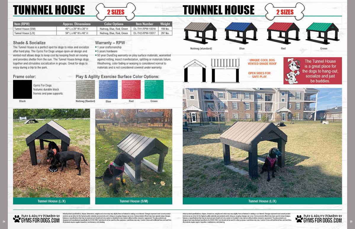 Built with the same sturdy materials as the larger model, the Tunnel House (S/M) is designed to withstand the demands of daily use in a busy dog park. Its smaller footprint makes it an excellent choice for parks with limited space, while still providing a high-quality experience for the dogs who visit.