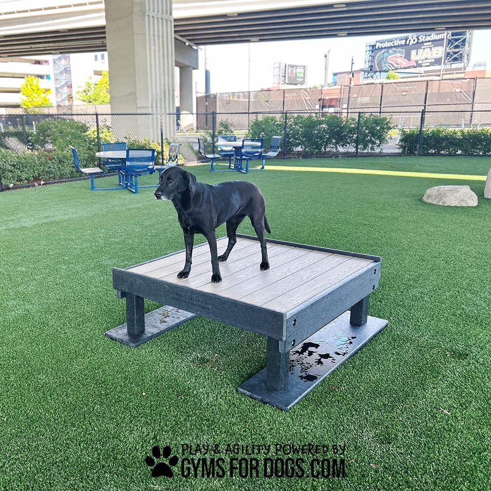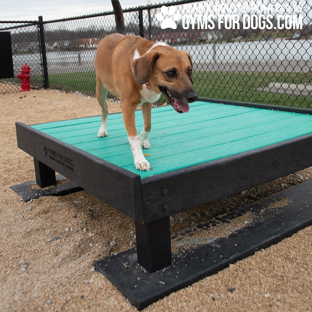 The Training Platform (L/X) provides a place for dogs to take a rest break while running the dog park course. Use this piece to practice commands and new training or groom your pooch while he takes a pause. This platform is designed for comfortable ADA use and features air vents for dogs to sit in comfort. Keeps dogs away from laying on the ground.