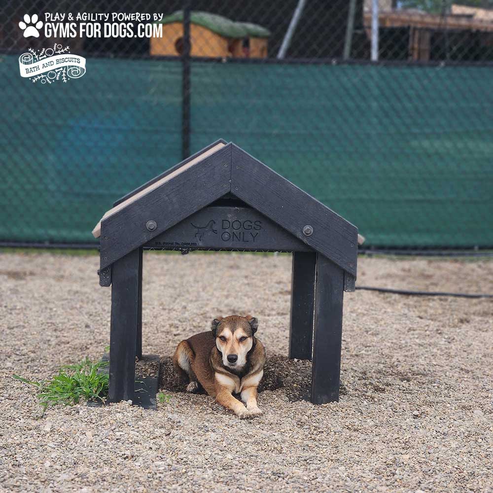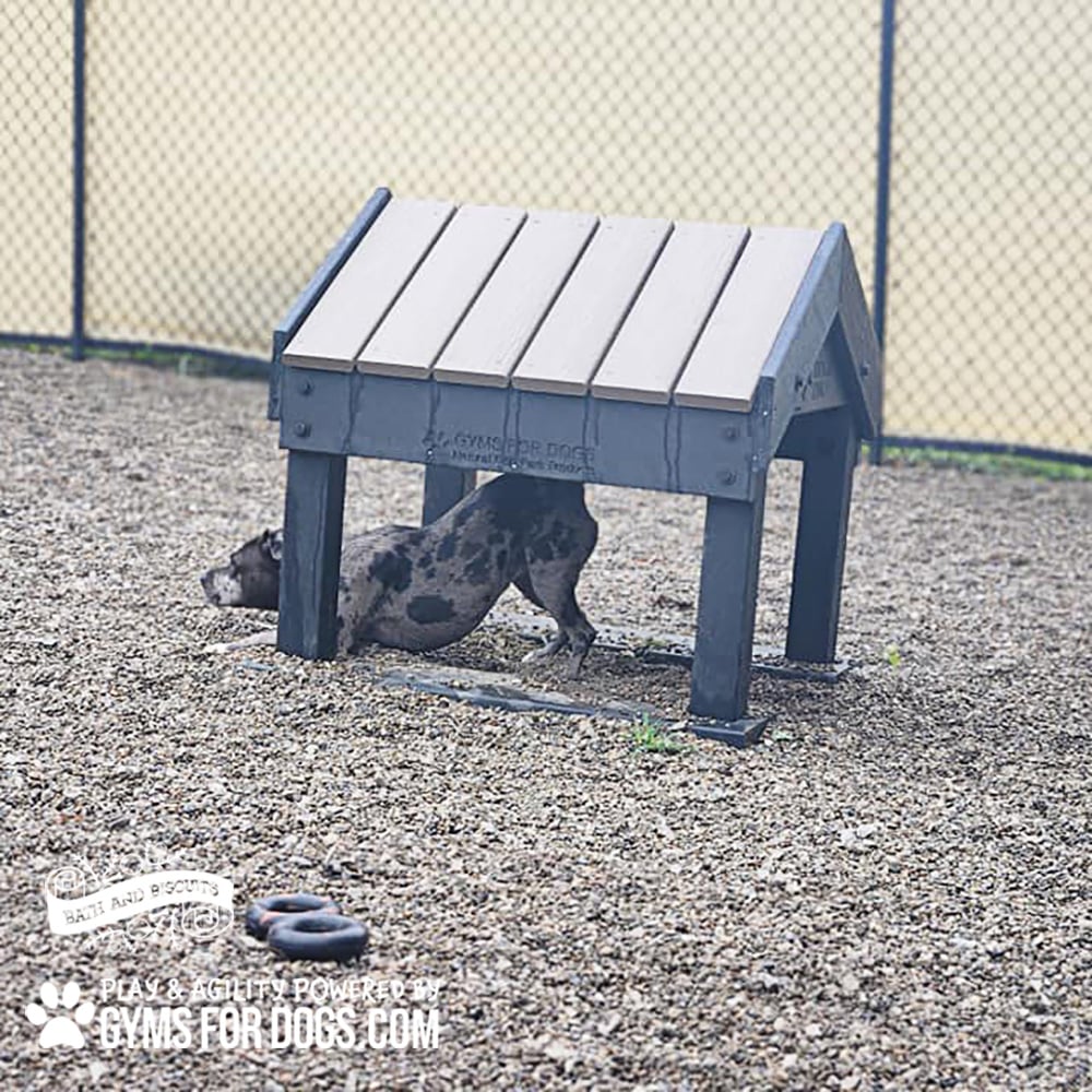 The Tunnel House (S/M) is a perfect spot for dogs to relax and socialize after hard play. The Gyms For Dogs open-air design and vented roof allows dogs to keep cool by keeping fresh air moving and provides shelter from the sun. The Tunnel House brings dogs together and stimulates socialization in groups. Great for dogs to enjoy during a trip to the park.